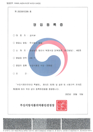 Certificates 기술현황 인증 및 특허 연구개발전담부서 인정서 FSSC22000 인증 Type B 인증 TYPE C 컨덕티브 태국등록디자인 ISO 9001 ISO 14001 토리컴 위험물 설계승인 증서 특허 제 10-0678622 호 특허 제 10-1037598 호 특허 제 10-1214121 호 특허 제 10-2702155 호 특허 제 10-2787603 호 특허 제 10-2792283 호 특허 제 10-2798425 호 특허 제 40-0801908 호 특허 제 40-2200967 호 특허 제 40-2200970 호 특허 제 40-2201882 호 수입식품영업등록증